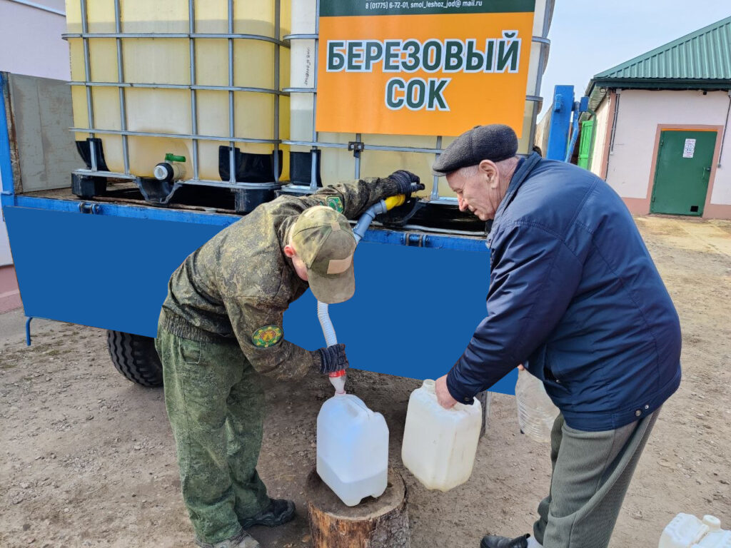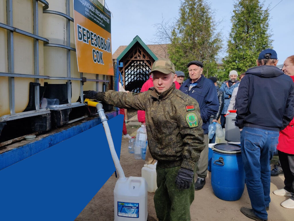 Алексей Кондратович приехал к лесничеству ранним утром, чтобы занять очередь. Мужчина пьет его с детства. С женой они закатывают сок в трехлитровые банки и везут на дачу. Потом угощают березовыми дарами детей и внуков. В этот раз он приобрел 45 литров полезного напитка.