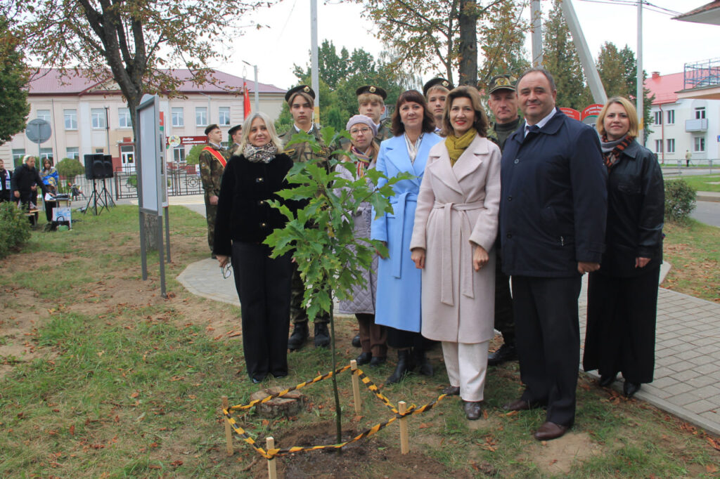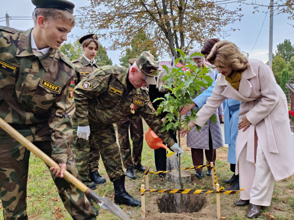 Все присутствующие почтили память учителей-фронтовиков минутой молчания, возложили цветы к подножию памятного знака и высадили на аллее красные дубы — как живой символ бессмертного подвига Героев войны.