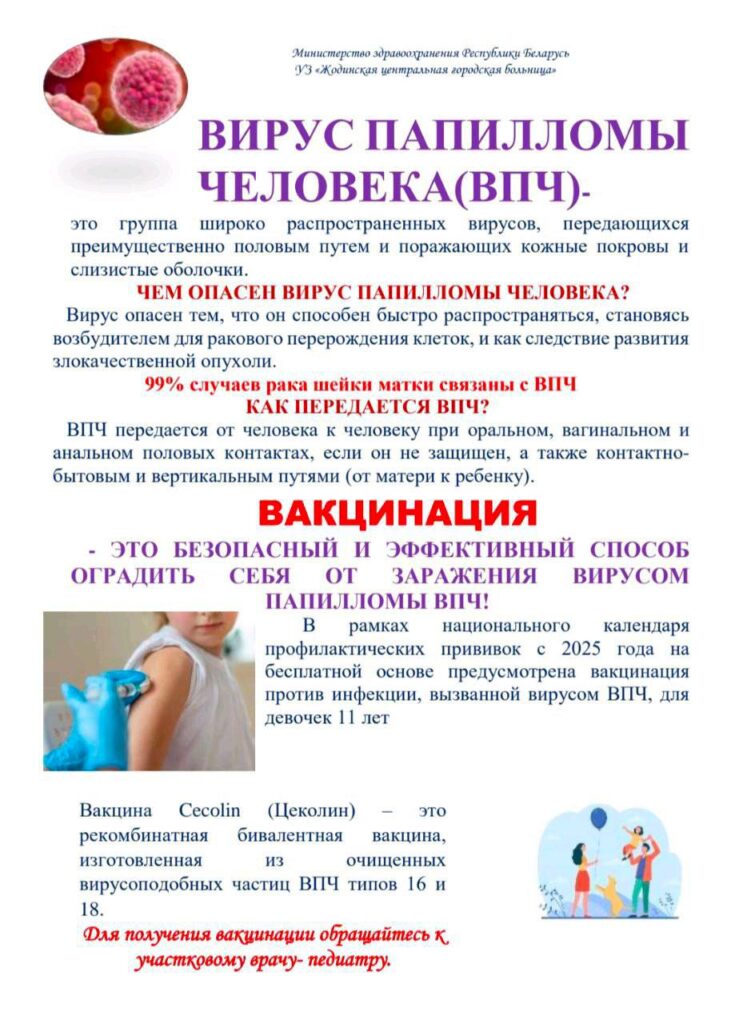С 2025 года в национальный календарь профилактических прививок внесена вакцинация против вируса папилломы человека (ВПЧ).