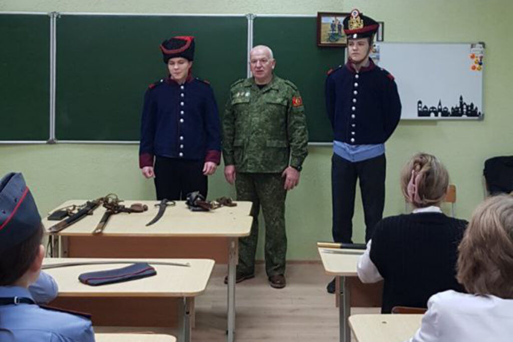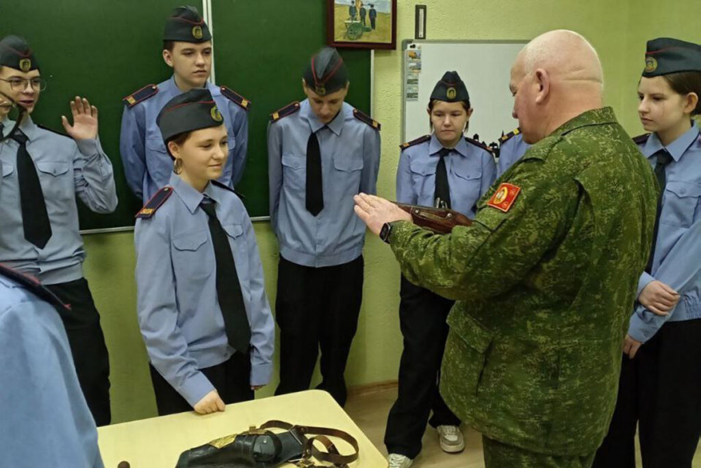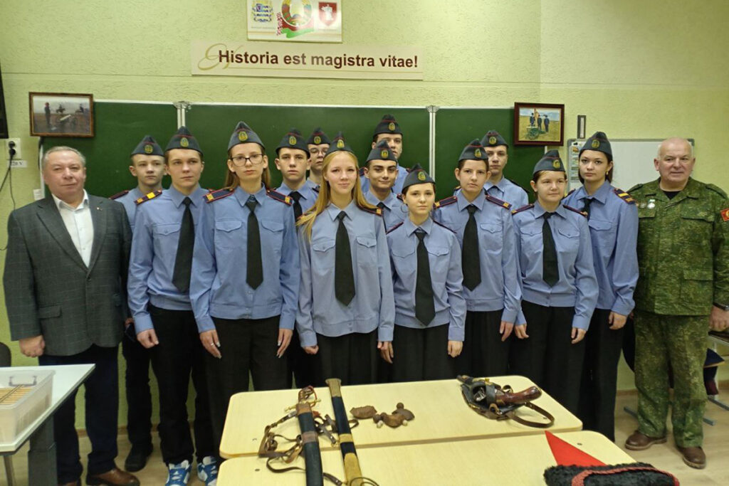 Председатель Совета ветеранов Жодинского отдела Департамента охраны МВД Юрий Шинкевич и руководитель по военно-патриотическому воспитанию СШ №2 Петр Чижов провели для школьников открытый урок «Жодино в войне 1812 года».