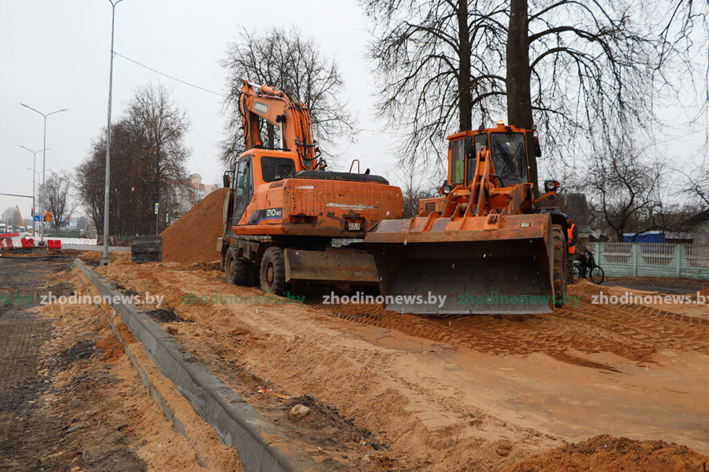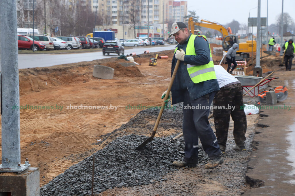 – Сейчас идут работы по замене и прокладке сетей бытовой и ливневой канализации, водопроводных и электрических сетей, устройству ровиков уширения проезжей части, установке бортового камня и опор освещения, укладке плитки на технических тротуарах и подготовке основания под будущие автобусные остановки, – прокомментировал Владимир Купревич.