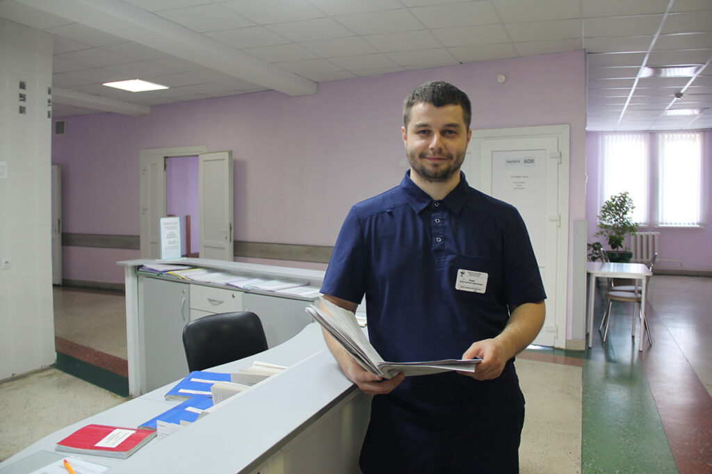 Трудовые недели проходят в интенсивном темпе. В часы приема в поликлинике к молодому врачу обращалось до 80 человек. Сейчас он работает в стационаре. Коллектив ЦГБ радушно принял молодого специалиста. За ним закреплен руководитель и наставник в одном лице – Вадим Меренков.