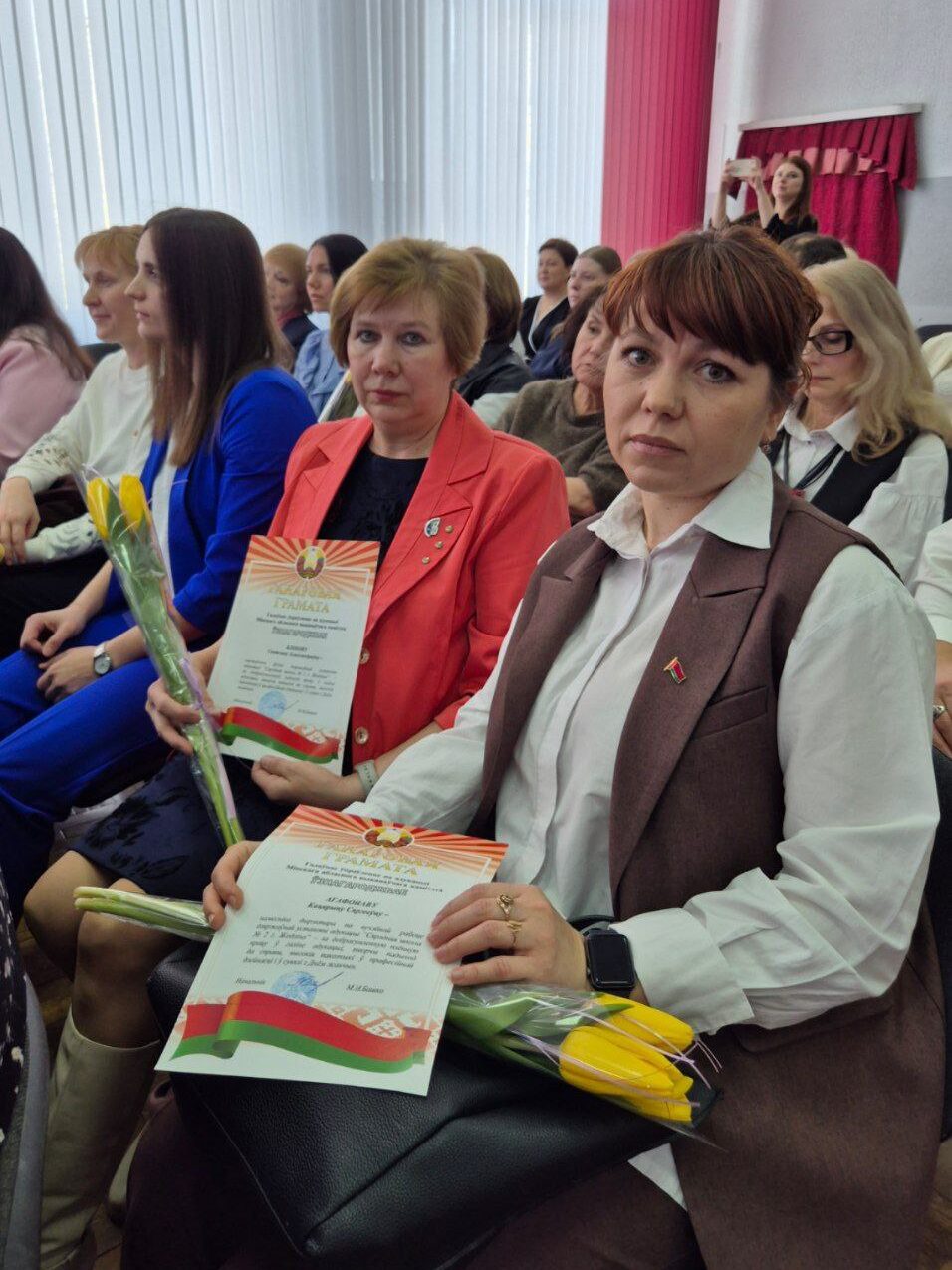 Ещё много наград и тёплых пожеланий получили сегодня педагоги от Белорусского союза женщин, отдела по образованию и спорту, Совета депутатов, профсоюза, «Белой Руси» и благочинного Жодинского церковного округа Сергия Чуковича. Приветствовали и ветеранов педагогического труда.