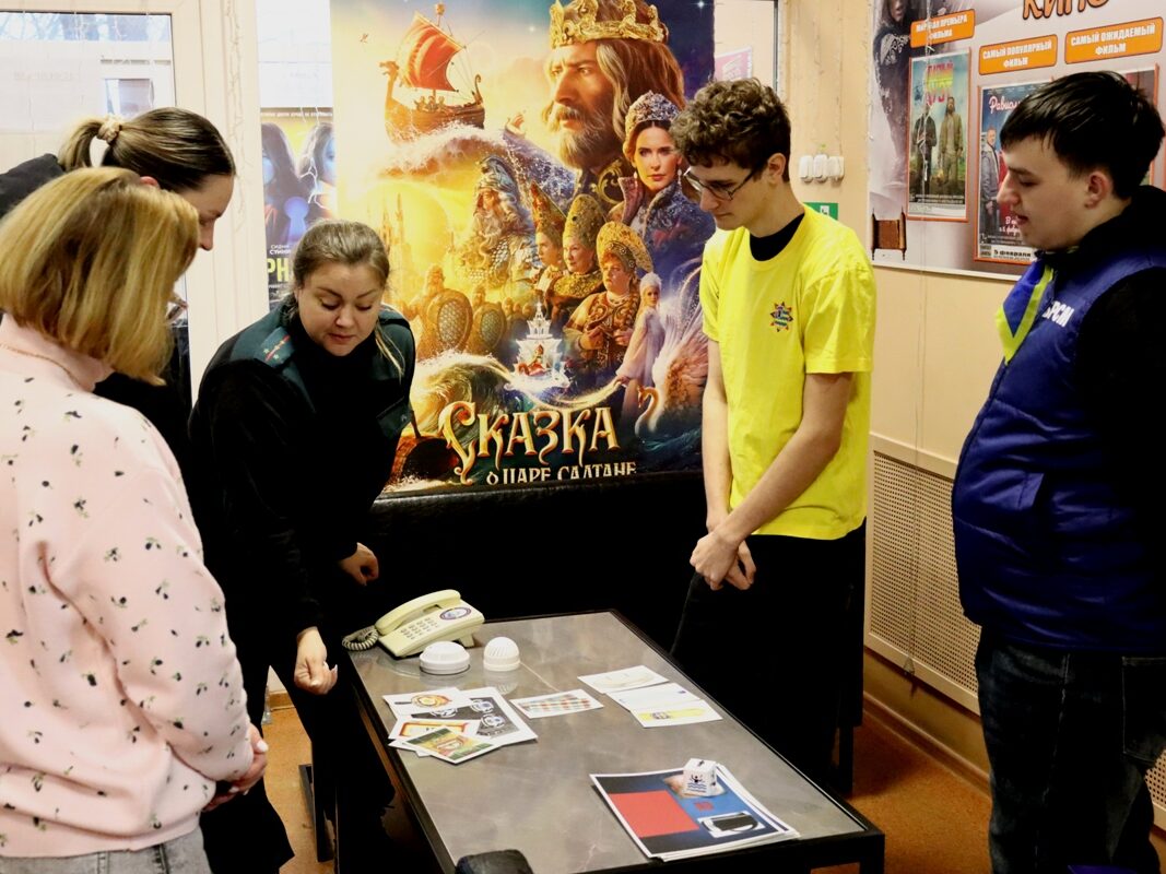 У гарадскім кінатэатры «Юнацтва» перад пачаткам сеансаў прайшла пазнавальная акцыя, якую правялі ратавальнікі горада разам з актывістамі Беларускай моладзевай грамадскай арганізацыі ратавальнікаў-пажарных і членамі БРСМ.