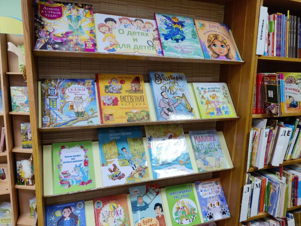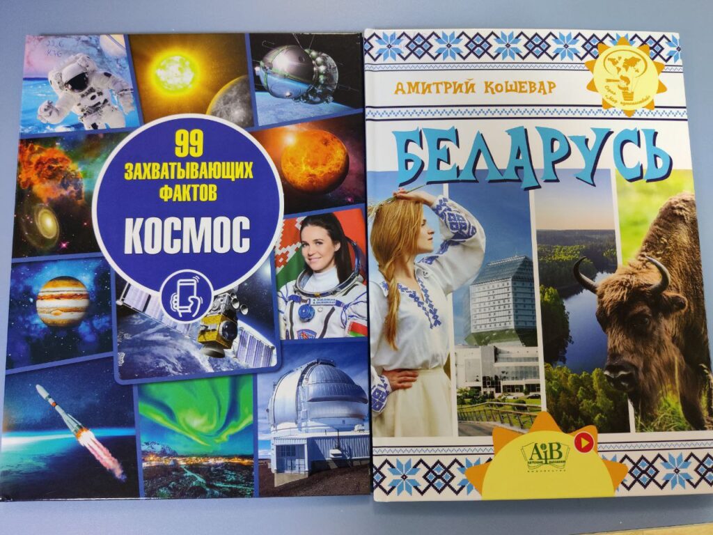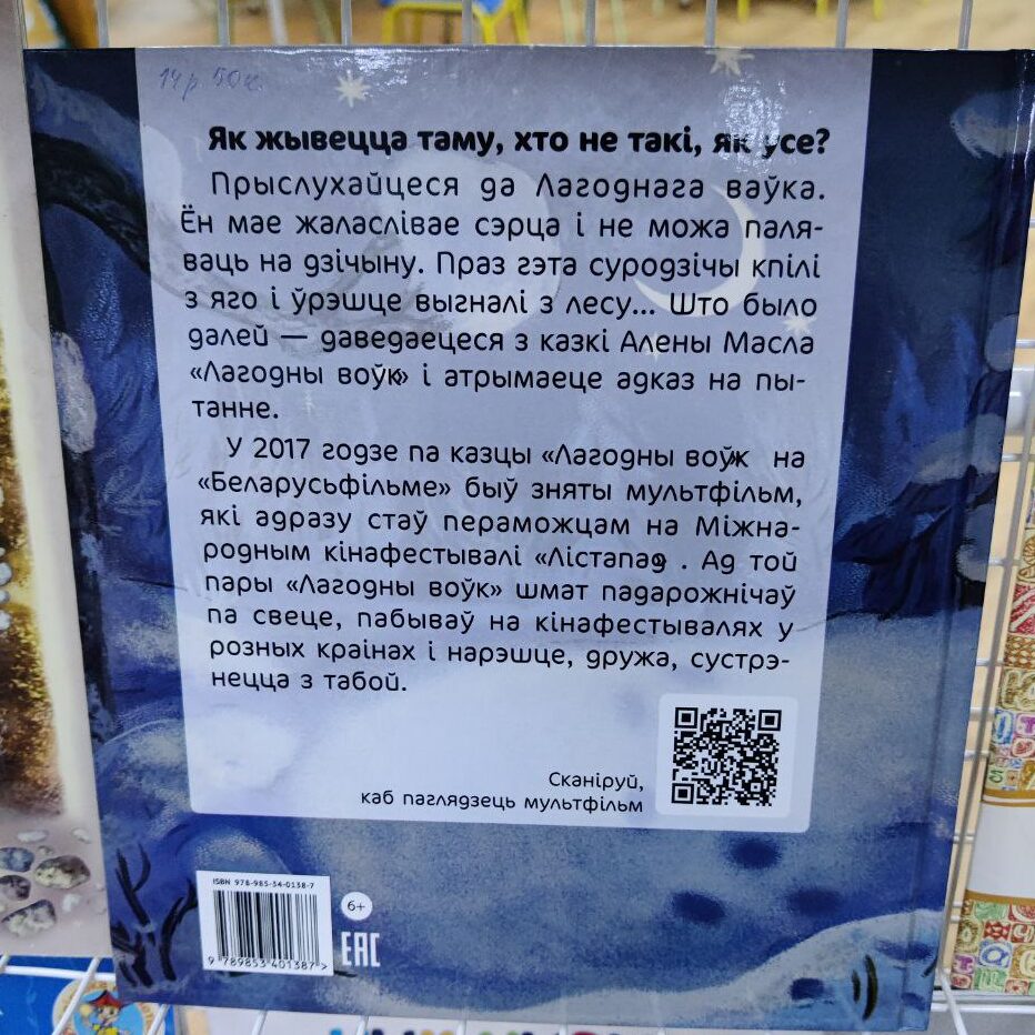 А еще множество книг белорусских писателей, из них самые читаемые «Пуговка. История одного зайчика» Ларисы Сперанской, «Про барашку Небарашку» Эльги Поповой и красочная книга Елены Масло «Лагодны Воўк» – сказка на белорусском языке, по которой снят мультфильм национальной киностудией и его можно посмотреть, перейдя по QR-коду на обложке.