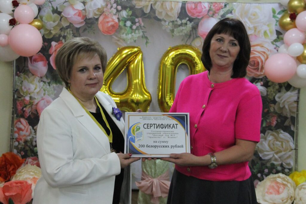 Сертификат на приобретение детской мебели от Жодинского горисполкома заведующей Татьяне Бондарь вручила Ольга Голобородова.