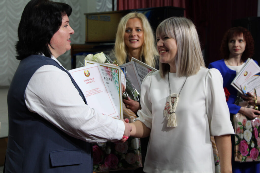 Поздравили педагогов и подвели итоги конкурса профмастерства Ольга Голобородова, начальник отдела по образованию, спорту и туризму горисполкома, и Елена Ахрамович, председатель городской организации Белпрофсоюза работников образования и науки.