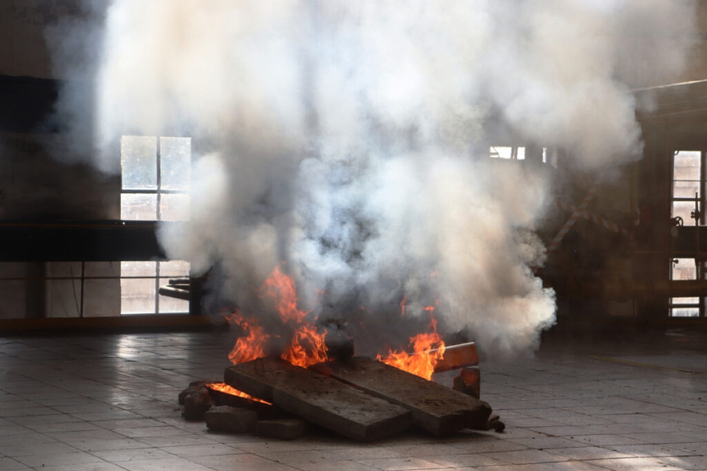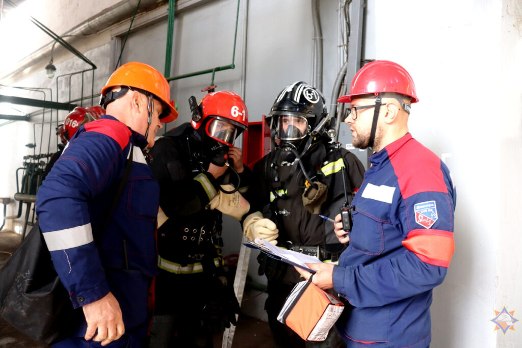 В котлотурбинном цехе Жодинской ТЭЦ, по легенде учений, произошло обрушение кровли, повлекшее повреждение газо- и мазутопровода котлоагрегата, что привело к возгоранию. Один человек оказался заблокирован внутри здания. Спасатели оперативно прибыли на место, деблокировали пострадавшего с помощью ручного гидравлического инструмента и передали его медикам. Очаг возгорания был быстро ликвидирован.
