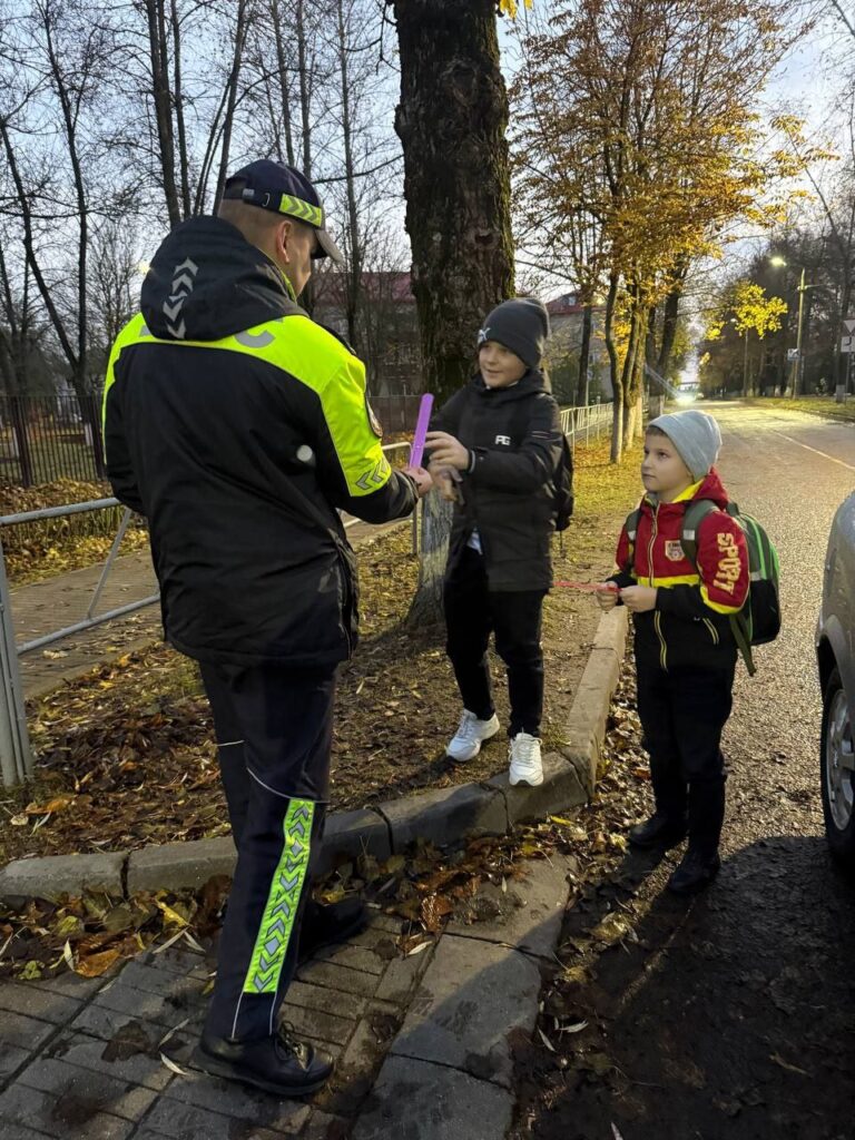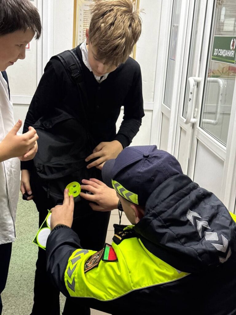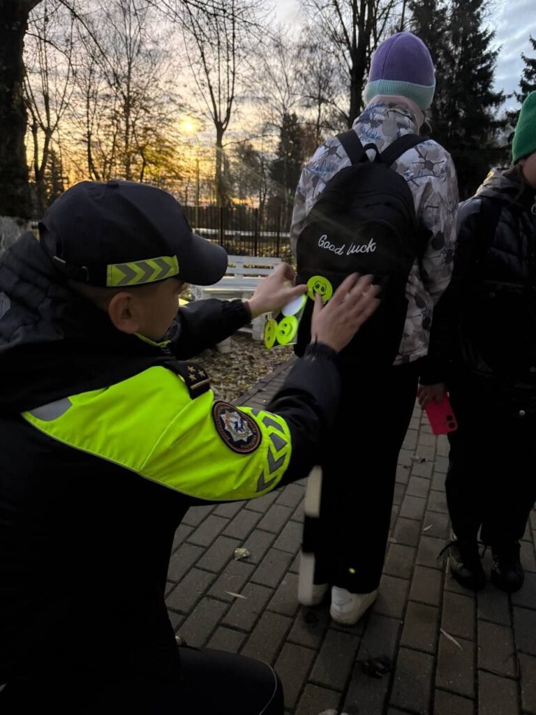 После беседы юным пешеходам вручили фликеры и дали советы по правильному их размещению.
