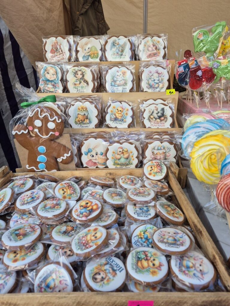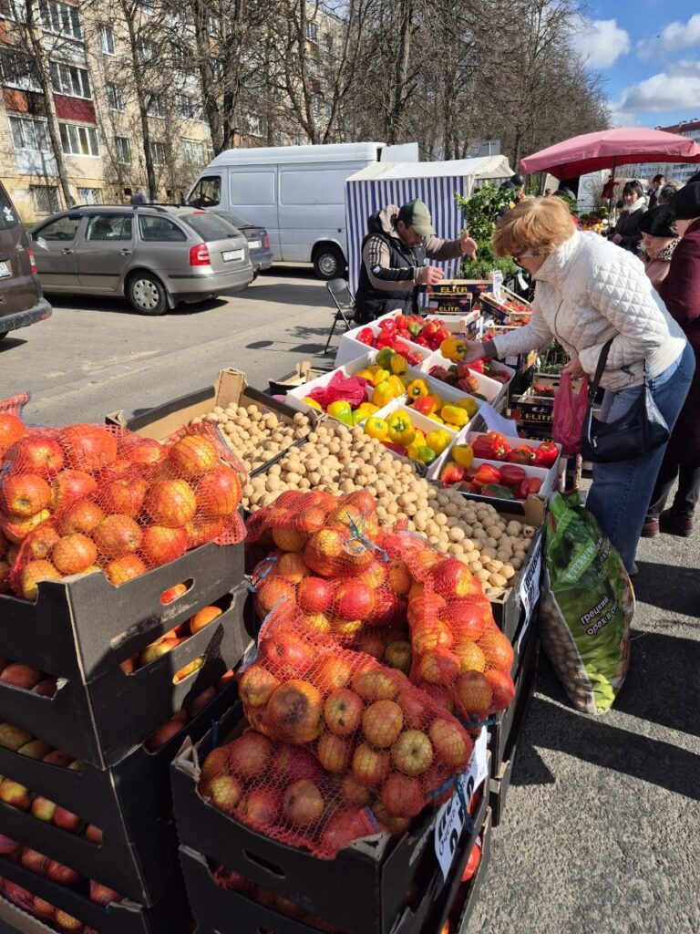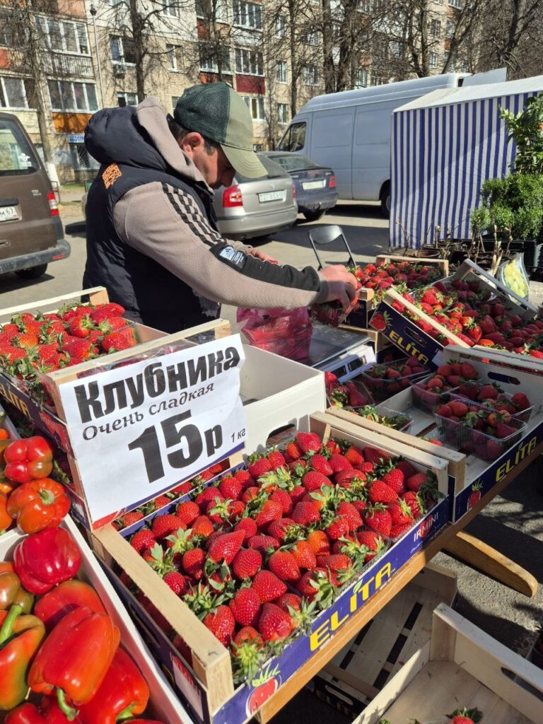 В субботу улица Гагарина превратилась в большой рынок – здесь с самого утра бойко шла торговля. Пользовались популярностью яблоки, орехи, сладости, мед. Охотно выстраивались горожане и у прилавков со свежими овощами и зеленью – весной особенно хочется витаминов. Яркие перцы и фермерские огурчики разлетались быстро. Соблазнительно улыбалась из лотков румяная клубника.