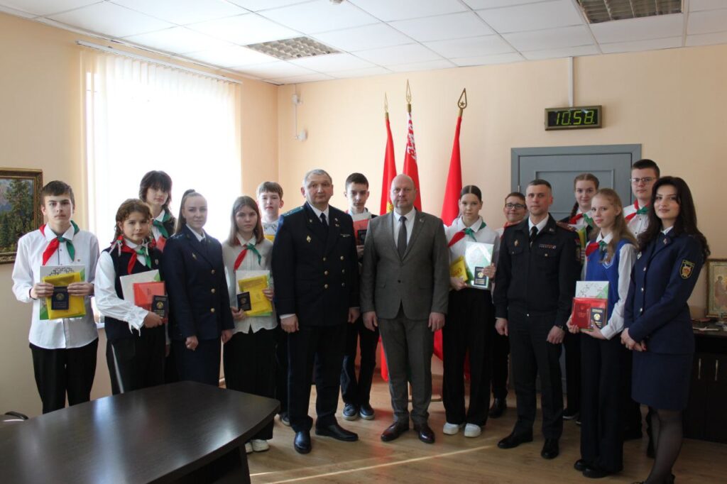 11 учеников городских школ сегодня получили главные документы и памятные подарки из рук председателя горисполкома Александра Цивако, прокурора Жодино и старшего советника юстиции Андрея Волосяна, а также начальника отдела внутренних дел горисполкома Сергея Слепнёва.