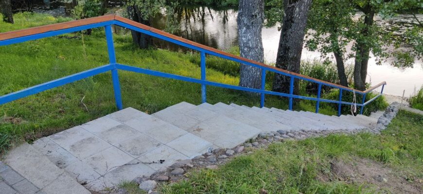 Возле родника на улице Жодинской продолжаются работы по облагораживанию территории: уложили новую плитку на лестнице и возле скамеек. Теперь спуститься
