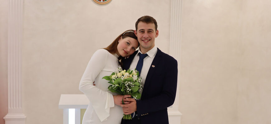 В ЗАГСе состоялась необычная регистрация: на бракосочетании Романа и Алины Киселевич присутствовали не только их родные и близкие. В зале собрались золотые
