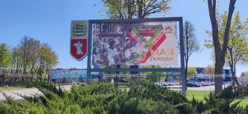 В районе детской поликлиники работники ЖКХ устанавливают баннеры ко Дню Победы!