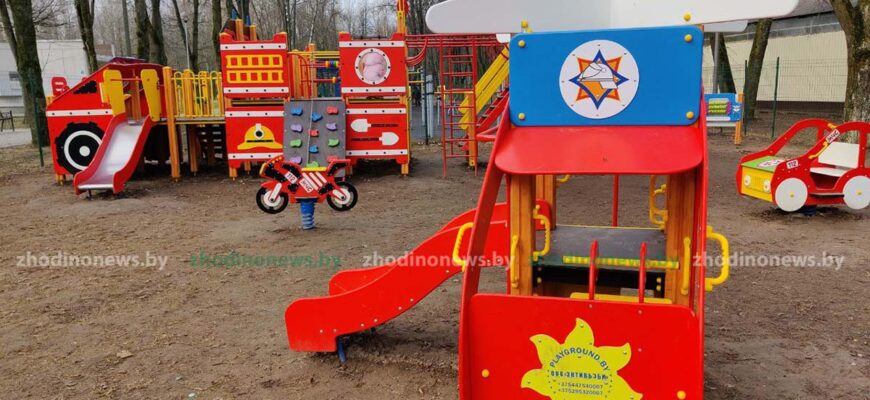 Игровой городок безопасности от МЧС в городском парке открыт и ждёт маленьких жодинцев! Детская площадка огорожена забором, но доступ к ней открыт со стороны главной арки.