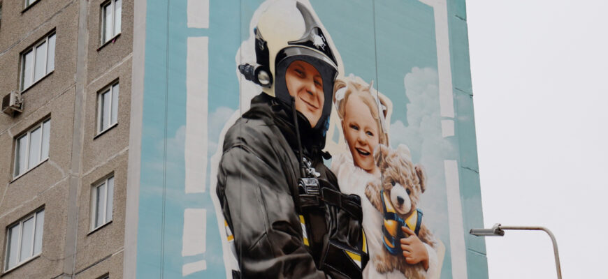 На одной из стен домов в Жодино появилось яркое граффити, мимо которого невозможно пройти мимо. На нем изображен спасатель МЧС, который держит на руках