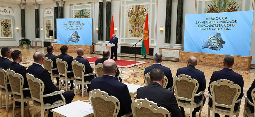 Президент Беларуси Александр Лукашенко вручил первые Государственные знаки качества представителям предприятий, продукция которых удостоена этой высокой оценки.