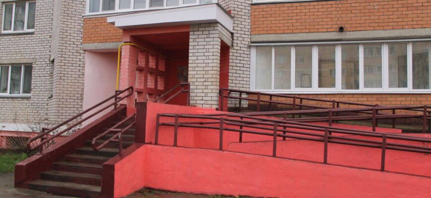 Несмотря на то, что эта девятиэтажка – кооперативный дом (ЖСПК «Світанак»), порядок там был далеко не везде. И стены в подьезде расписаны, и пандус провален