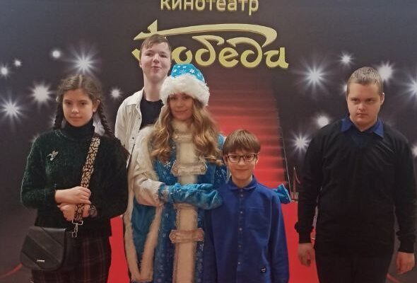 В рамках акции ученики средних школ №4 и №8 посетили благотворительное мероприятие в столичном кинотеатре «Победа». Ребята встретились со сказочными