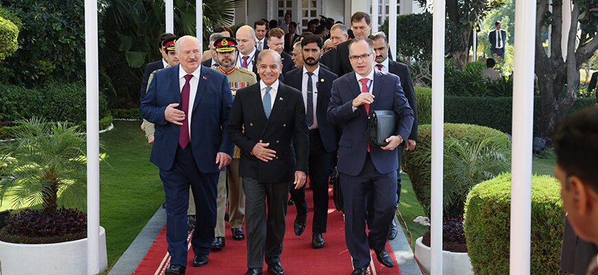 Президент Беларуси Александр Лукашенко в формате неформального обеда провел встречу с премьер-министром Пакистана Шахбазом Шарифом, передает корреспондент БЕЛТА.