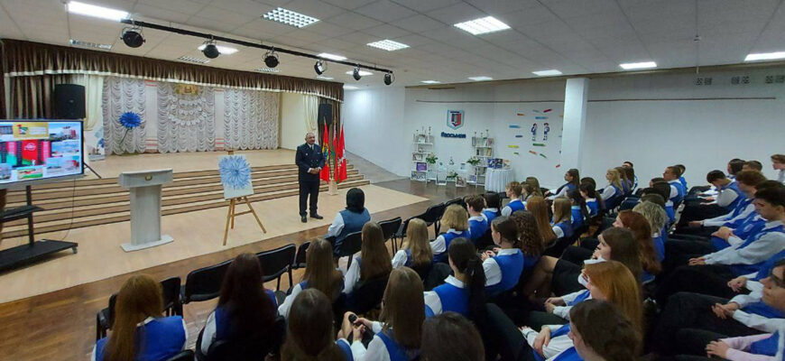 В нём принял участие Евгений Голубев, заместитель командира 65-й автомобильной бригады-начальник отделения идеологической работы. Встреча с восьмиклассниками