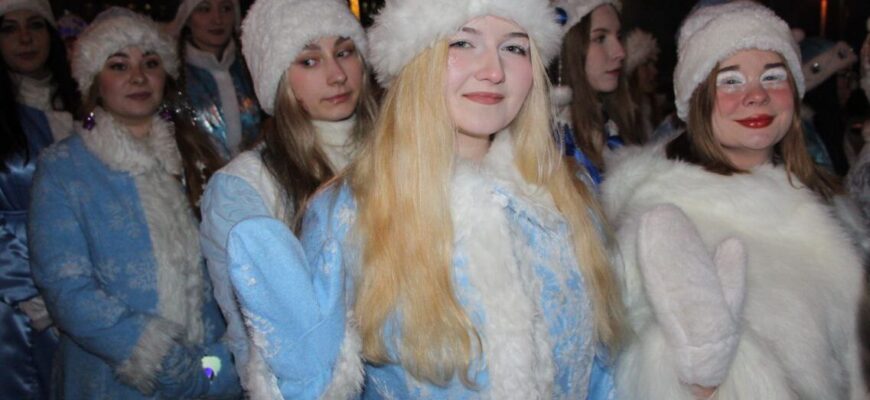 Красочным шествием по центральным улицам Жодино прошли зимние волшебники. Вместе с горожанами Деды Морозы и Снегурочки зажгли огни на главной городской елке.
