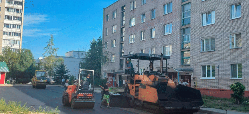 На дворовых территориях домов №2, 4 на ул. Гагарина и №27, 29, 31 на ул. 50 лет Октября уже «вырисовались» пешеходные развязки и новые парковки, установлен дорожный борт.