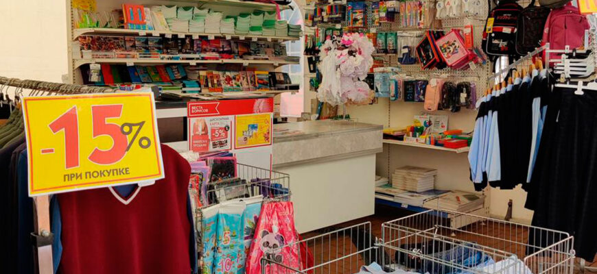 Здесь можно было найти одежду как для первоклассников, так и для старших школьников, письменные принадлежности, обувь, спортивные костюмы, рюкзаки и многое другое.