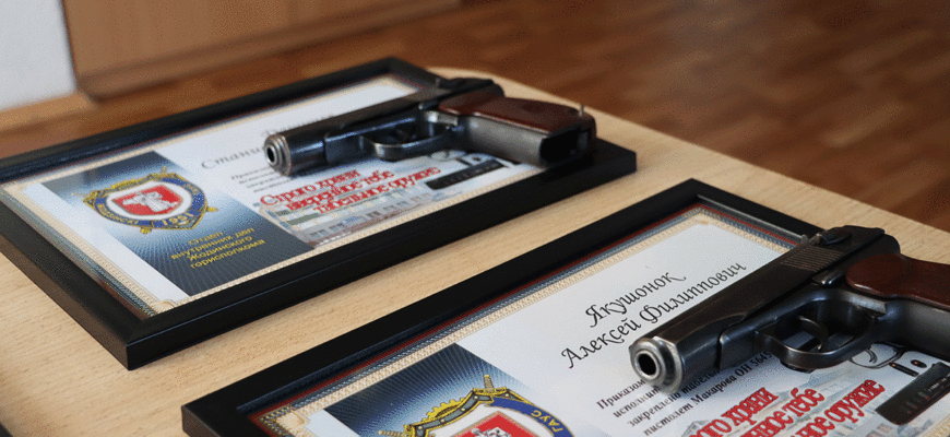 Два новоиспеченных сотрудника ведомства получили оружие из рук заместителя начальника Жодинского ГОВД — начальника криминальной милиции Александра Решетника.