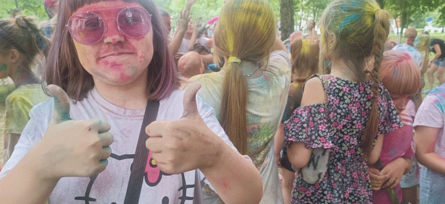 На улице Советской замечена толпа веселых детей и взрослых, которые танцуют под зажигательные хиты, участвуют в конкурсах и обсыпаются разноцветными красками!