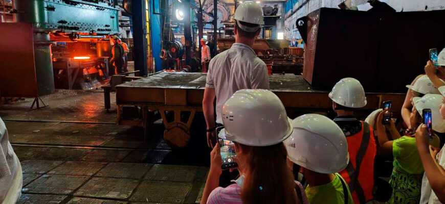 С экскурсией Кузнечный завод тяжелых штамповок посетили учащиеся средней школы №9. Ребятам было интересно побывать в цехах предприятия, увидеть, как трудятся