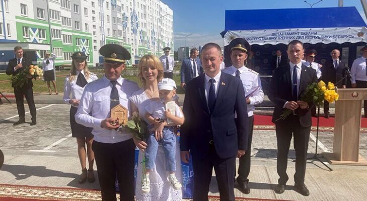 Губернатор Минской области Александр Турчин принял участие в церемонии вручения ключей от новых квартир сотрудникам Департамента охраны МВД в Сенице.