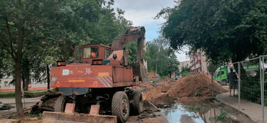 Во дворе дома №16 на проспекте Мира идет замена участка тепловой сети. Работы организованы для качественного теплоснабжения жителей в зимний период.