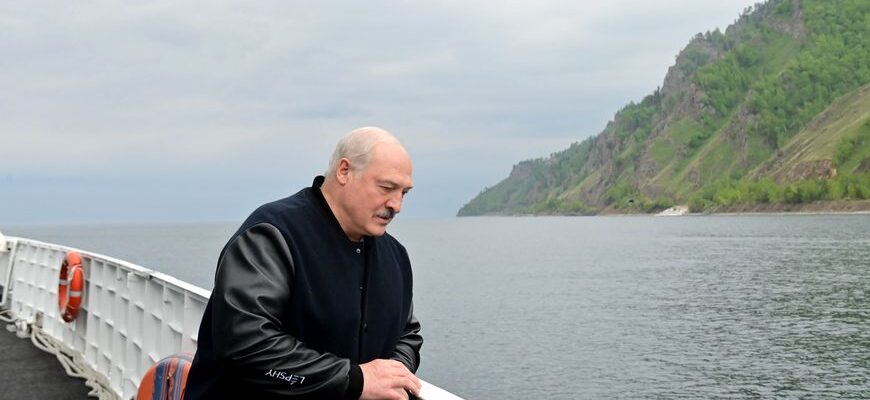 Президент Беларуси Александр Лукашенко совершил прогулку на корабле по озеру Байкал и ознакомился с местными красотами во время своего визита в Иркутскую
