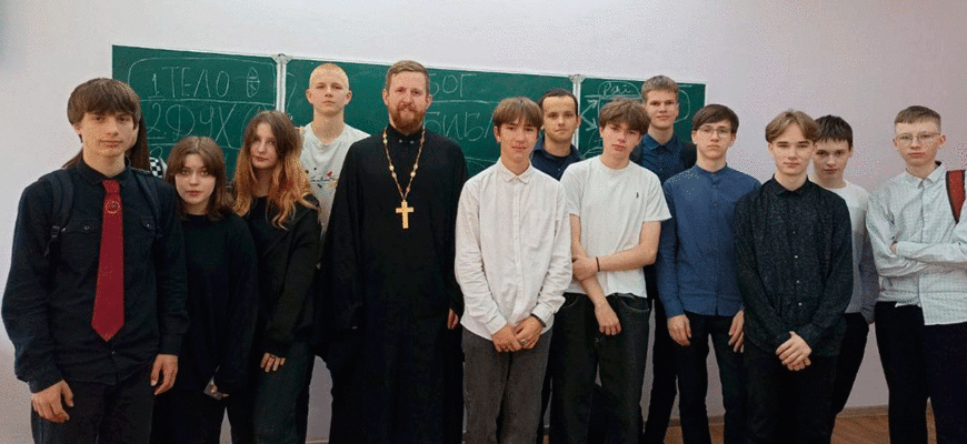 Благочинный Жодинского церковного округа иерей Сергий Чукович, настоятель храма преподобного Сергия Радонежского, провел образовательную беседу с девятиклассниками