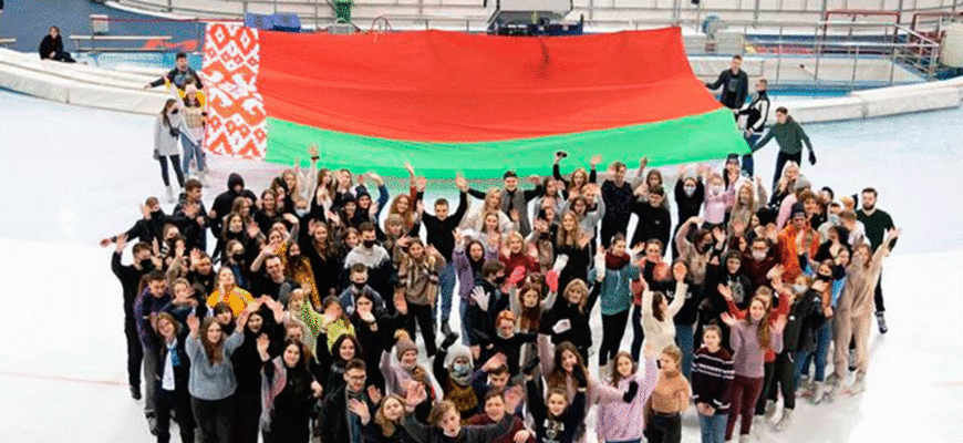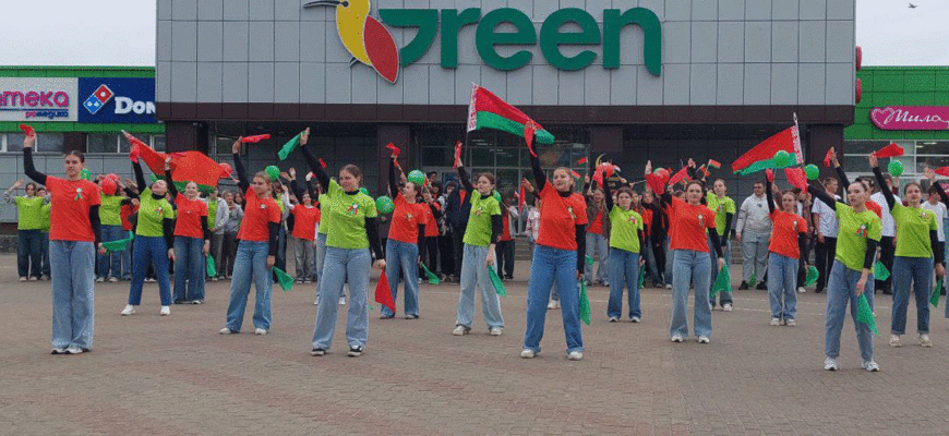 В канун Дня Государственного флага, Государственного герба и Государственного гимна Республики Беларусь юные патриоты из Жодино провели флешмоб «Беларусь единая».