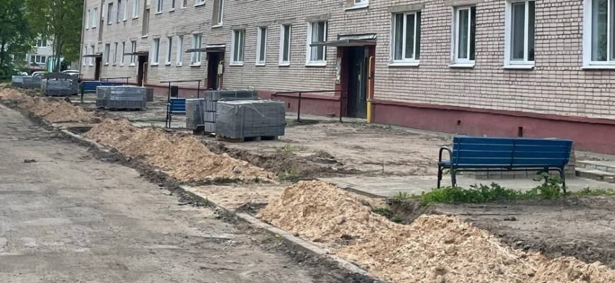 Еще один дом обновляется — идет ремонт подходов к подъездам дома №13 на ул. 50 лет Октября.Не так давно здесь была проведена тепловая реабилитация торца.