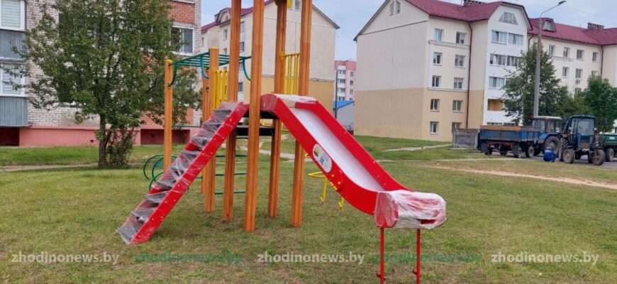 На площадке напротив дома 14 на улице Рокоссовского и дома 7 по проспекту Ленина установили детский игровой городок. Качели, горки, турники – яркое оборудование