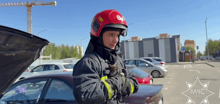 Утром 20 августа взволнованная девушка обратилась к спасателям за помощью: на стоянке, на проспекте Ленина, под капотом её машины застрял котёнок.