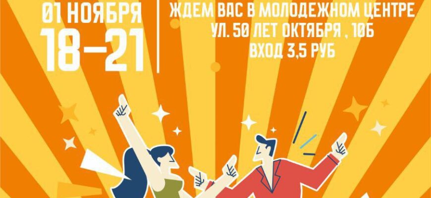 Приглашаем на дискотеку в Молодежный центр! Дата: 1 ноябряВремя: 18.00 Место: Молодежный центрСтоимость: 3,50р.18+ Не упустите шанс провести незабываемый