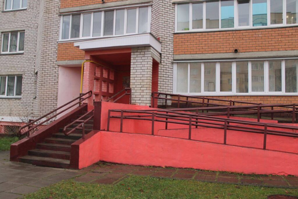Несмотря на то, что эта девятиэтажка – кооперативный дом (ЖСПК «Світанак»), порядок там был далеко не везде. И стены в подьезде расписаны, и пандус провален, да и во дворе было куда руки приложить.